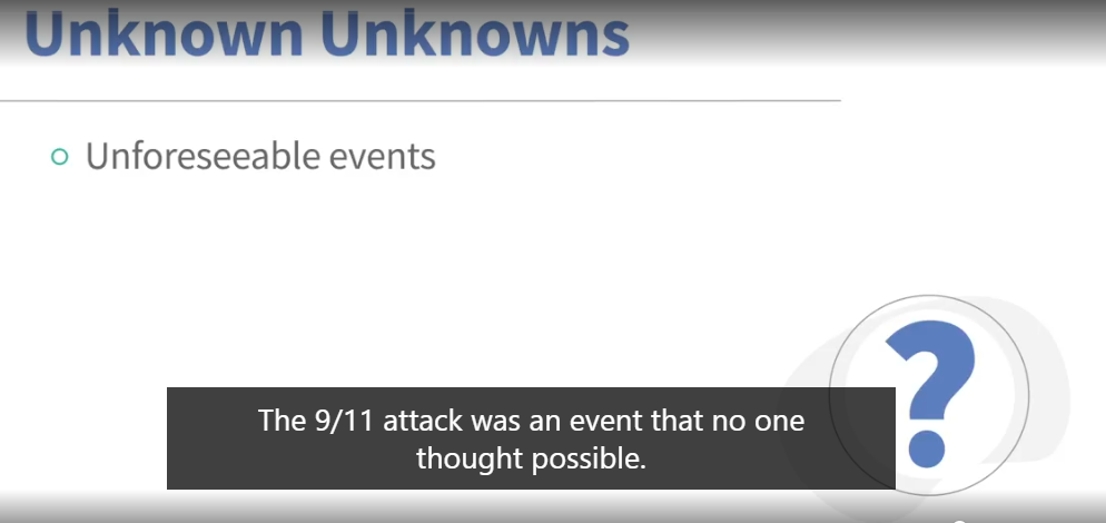 Raise your hand if you expected 9/11 to be the example of unforeseen risk in this project management course